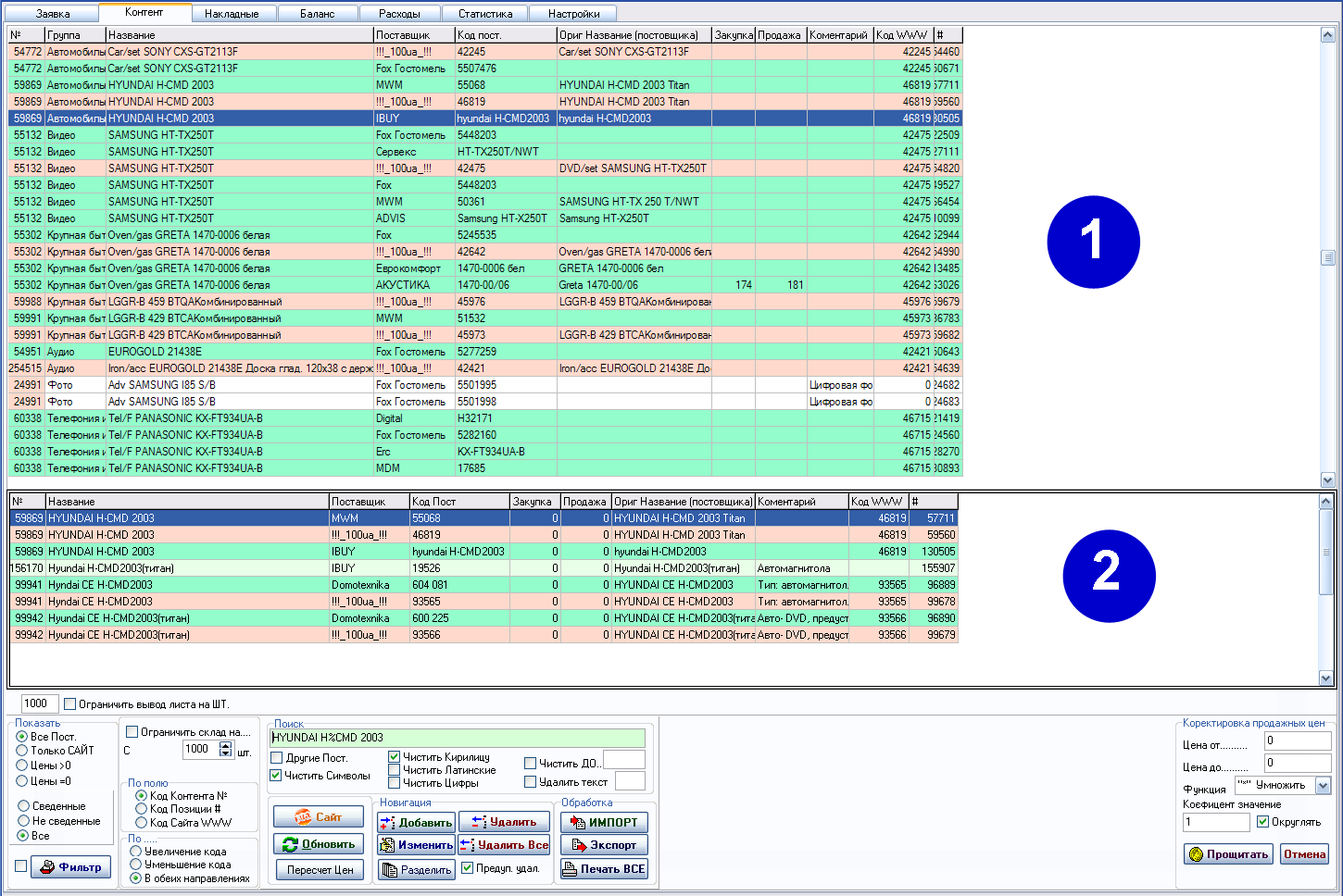 Работа с Контентом и прайсами поставщиков, ценообразование.