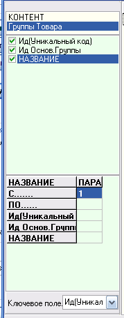 галочками ,Ид - Ид осн.группы - название, укажите ключевое поле (по
