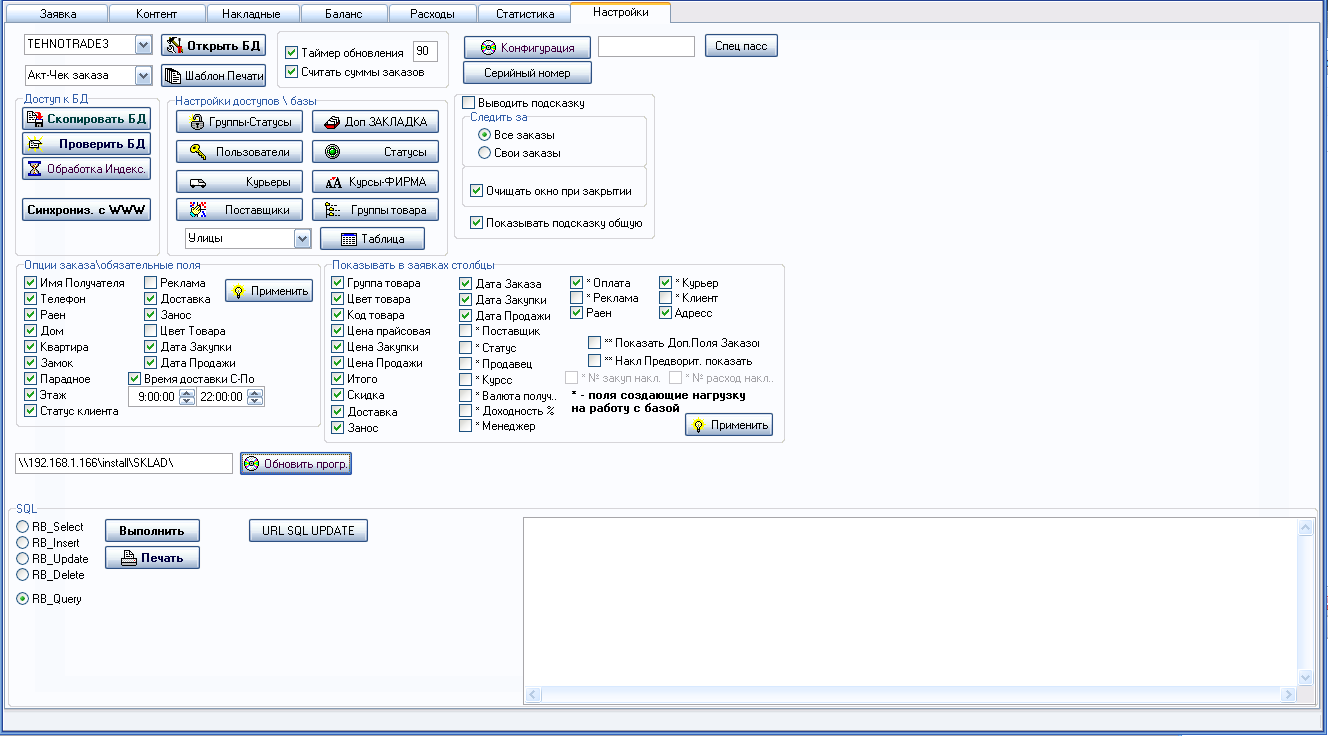 Блок SQL – Используется для прямых запросов к базе для оперативных корректировок данных (используется только мной или под моим руководством что и как делать)