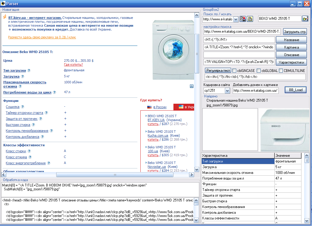 Разработан парсер контента который вытягивает информацию о товарах из любых источников.